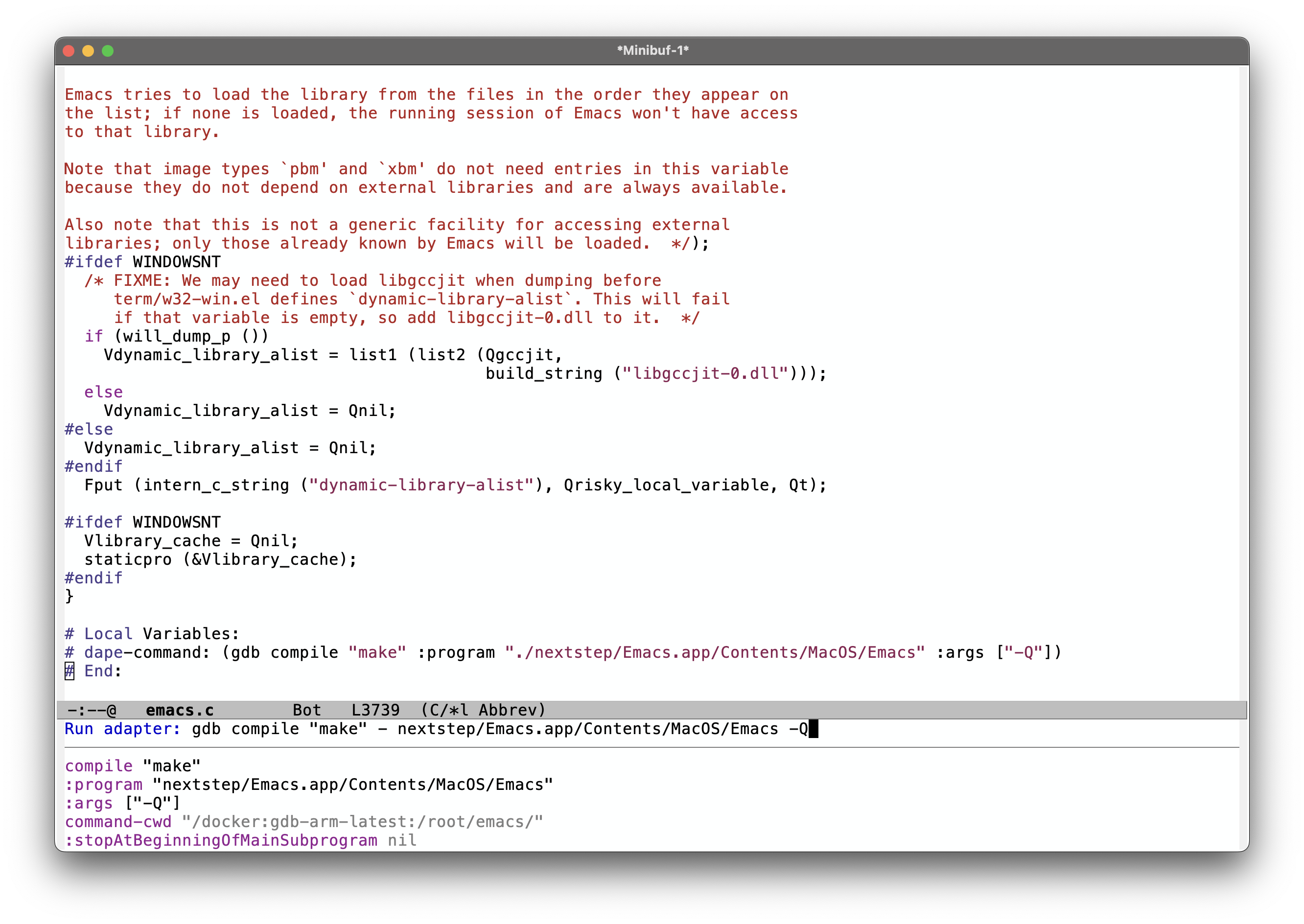 llvmpath to thePATHvariable ($(brew --prefix --installed llvm)/bin) M-x dapeand pass in arguments of interest- To pass arguments, use